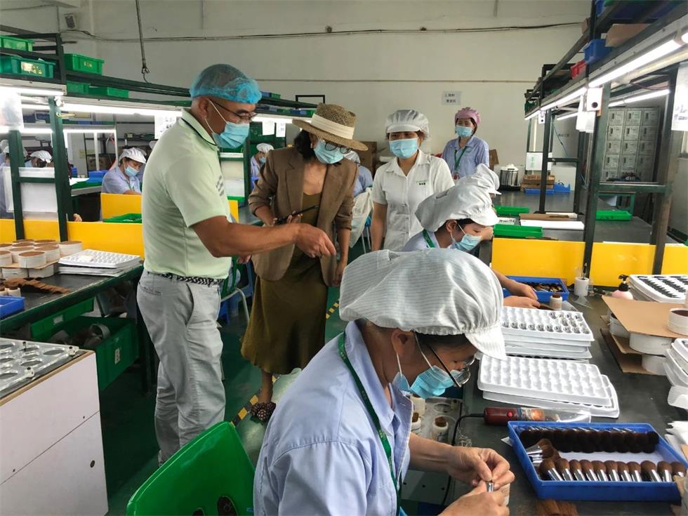 2020年06月05日,深圳市鵬灣公益基金會組織會員企業進行了互訪交流活動。基金會總顧問張奕炎、秘書長鍾燕萍偕同基金會會員、深圳市鹿言文化傳播有限公司董事長閆貴妃女士一行,拜訪了基金會理事林軍董事長及其企業91看片在线化妝用品(深圳)有限公司。